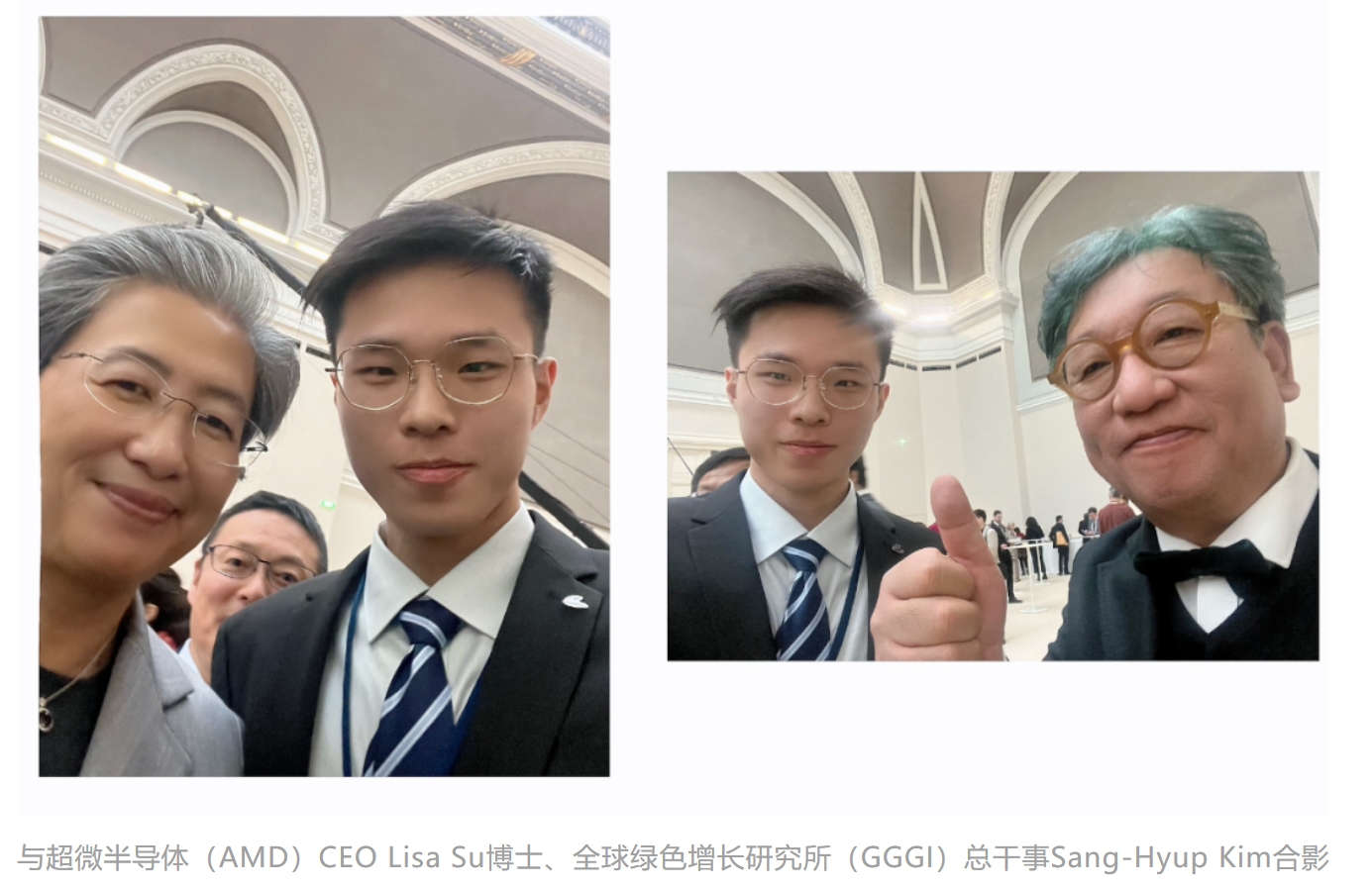 峰会期间,黄一马同学积极参与,并与超微半导体(AMD)CEO Lisa Su博士、全球绿色增长研究所(GGGI)总干事Sang-Hyup Kim等在内的多位全球专家、政策制定者及行业领袖们进行了深入交流。