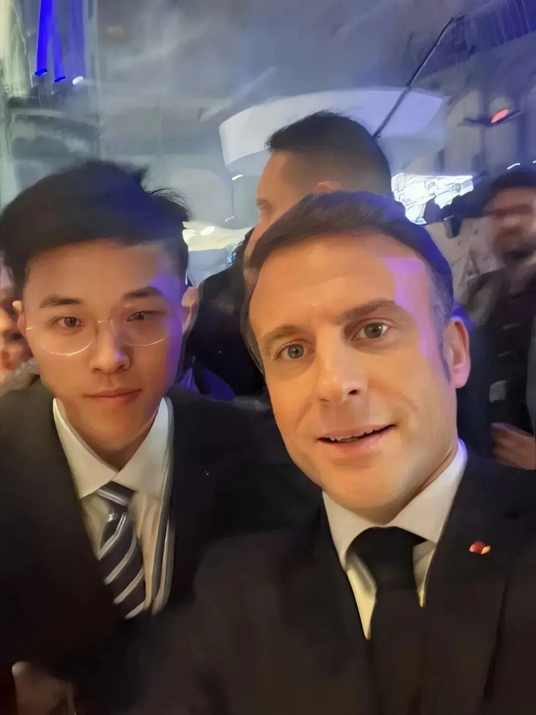 闭幕式上,马克龙总统发表闭幕演讲,他强调了法国及欧盟在AI发展的决心,包括政府加大投资、吸引外资、建设数据中心和能源网络,以及呼吁建立一个可信赖的框架,以在避免过度监管的同时,确保技术的安全和可靠应用。他还提到法国希望加强与中国的合作,共同推动全球AI发展。黄一马同学有幸亲历现场,并与马克龙总统交流、合影留念。