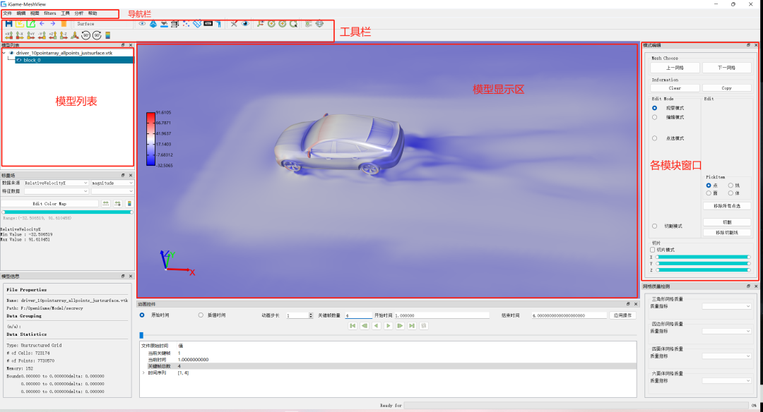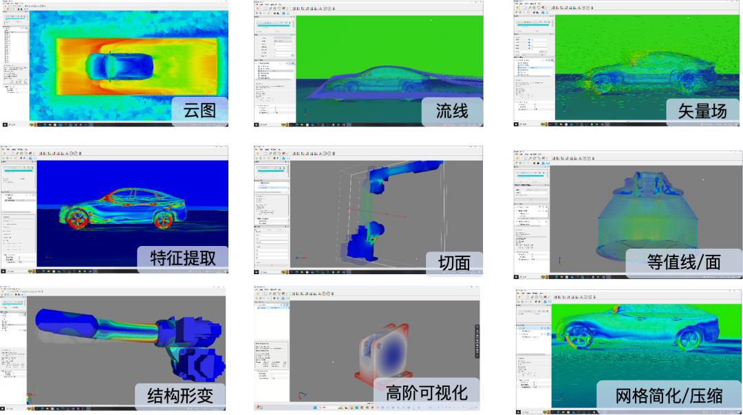 1. 高效核心数据结构设计:支持多种表面网格、体网格及混合网格的处理,同时兼容CAE仿真中的标量、矢量和张量科学计算数据类型,实现精准而丰富的可视化效果。
